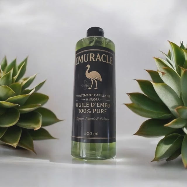 Discover Emuracle, the hair treatment that reinvents hair beauty. Fresh from our laboratory, this exceptional treatment is much more than an oil: it's an intensive revitalizing treatment for your locks. We've combined the power of 100% pure emu oil, known for its ability to penetrate deep into the hair, with keratin that rebuilds the fiber and jojoba oil that seals in moisture and enhances shine.